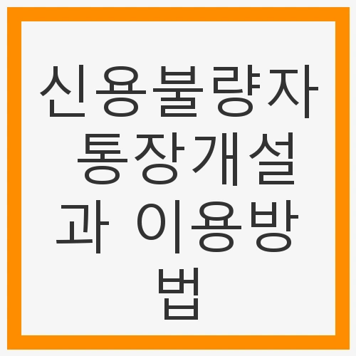 신용불량자 통장개설과 이용방법에 대한 이해는 많은 이들에게 매우 중요한 문제입니다. 특히 경제적 어려움 속에서 신용불량자로 분류된 경우, 통장을 개설하고 일상적인 금융 거래를 수행하는 데에 큰 제약이 따릅니다. 신용불량자로 살아간다면 일상생활에서 여러 어려움을 겪게 되는데, 이러한 상황을 개선하기 위해서는 신용불량자 통장개설이 필요합니다. 본 글에서는 신용불량자 통장개설 방법과 이용에 대한 구체적인 정보를 제공하고, 이를 통해 보다 나은 금융 환경을 조성할 수 있는 방법을 제시하고자 합니다.