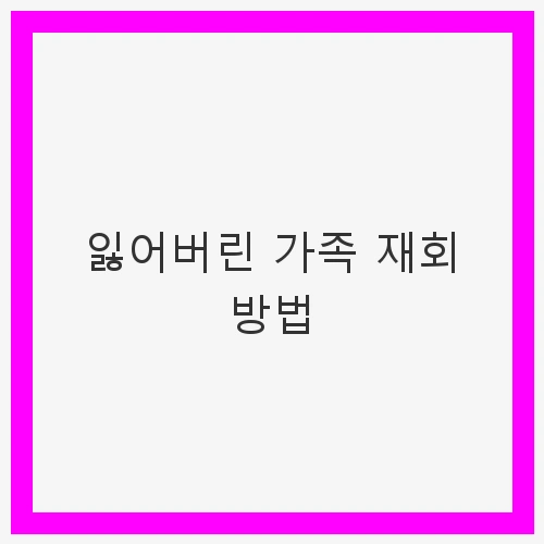 가족을 잃어버리는 것은 어떤 이에게는 삶에서 가장 큰 고통 중 하나일 수 있습니다. 세월이 흘러도 그 어떤 것으로도 대체할 수 없는 그리움은 마음 깊은 곳에 남아 있습니다. 잃어버린 가족을 다시 만날 수 있는 방법은 과연 존재할까요? 많은 사람들이 오랜 시간 동안 그리움에 시달리며 다양한 방법을 시도하지만, 쉽지 않은 현실이 많습니다. 하지만 희망을 잃지 않고 노력한다면, 재회가 가능하다는 사실을 우리는 잊지 말아야 합니다. 본 블로그에서는 잃어버린 가족과 다시 만날 수 있는 몇 가지 방법을 제시하며, 그 과정 속에서의 마음가짐과 인내의 중요성에 대해 이야기해 보겠습니다.