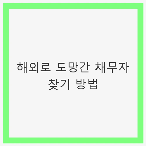 해외로 도망간 채무자를 찾기 위해서는 기본 정보를 체크하고, 소셜 미디어를 활용하며, 법적 조치를 고려하는 등의 방법을 취해야 합니다. 상황에 따라 전문가의 도움을 받는 것도 유효한 방법이니 참고하시길 바랍니다. 각 단계에서 신중함을 유지하며, 상황을 원활히 해결해 나가길 바랍니다.